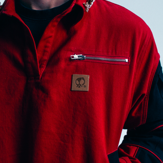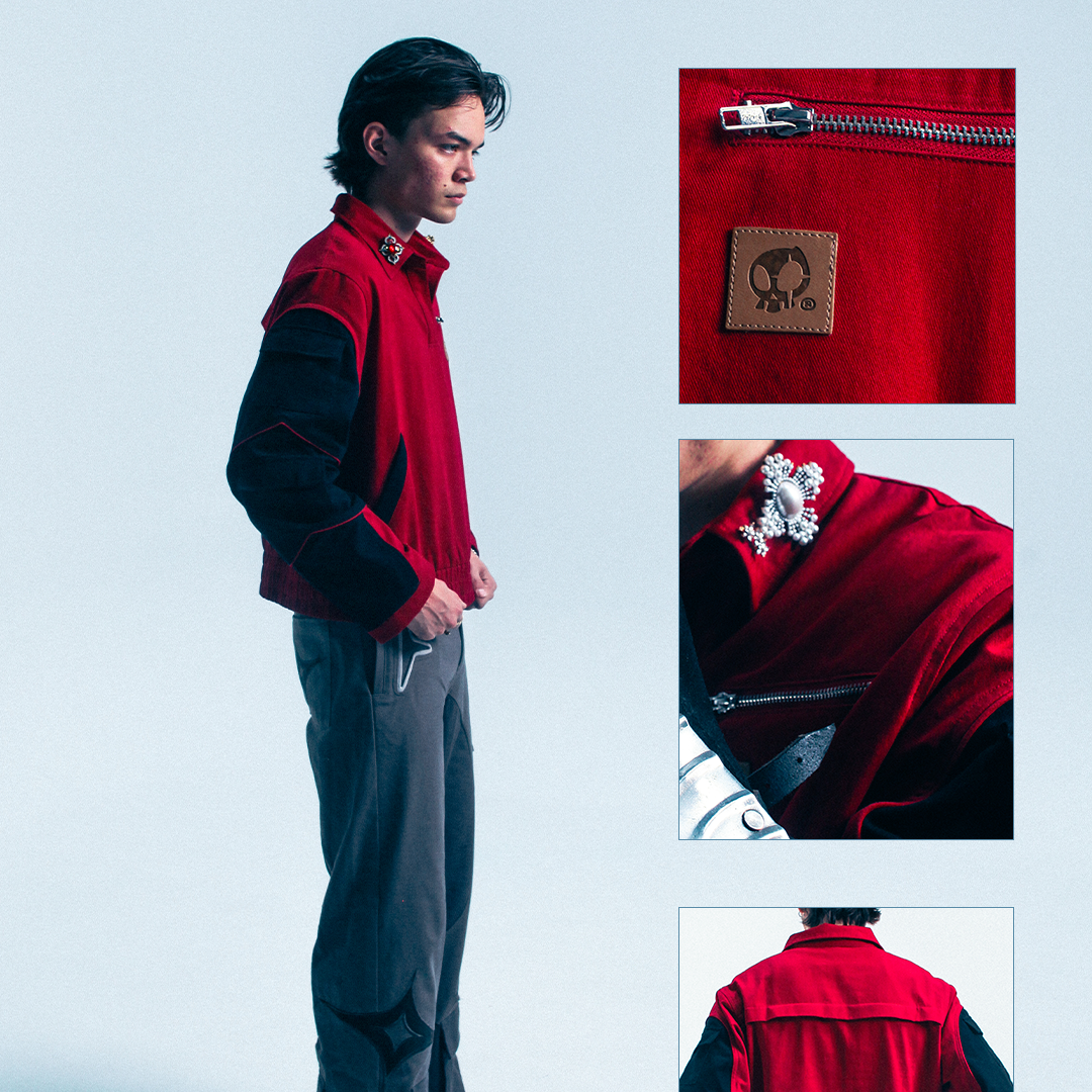 - LEATHER SKULL PATCH AND ZIPPER POCKET ON CHEST